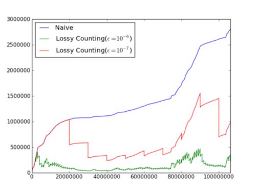 前に以下の記事でLossy Countingを実装しましたが、より省メモリな変種があるらしいのでそちらも書いてみました Lossy Countingを実装してみた - 省メモリな頻度計測 - 唯物是真 @Scaled_Wurm 以下の論文のAlgorithm 2の擬似コードそのままです。 "Methods f…