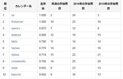 去年Advent Calendarの参加者が1年間でどれぐらい入れ替わっているのか調べました sucrose.hatenablog.com せっかくなので今年も調べてみます2016年と2015年のQiitaで公開されているアドベントカレンダーを調査の対象とします Advent Calendar 2016 - Qiita …