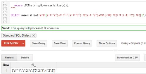 残念なことにDBにJSONなどではなくPHPでシリアライズされた形式でデータが保存されていることがあります この中身をBigQuery側から参照したかったので調べてみました軽く検索したところJavaScriptでPHPのシリアライズされたデータをもとに戻せるライブラリは…