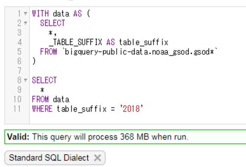 BigQueryのクエリでテーブル名の末尾に日付などを入れておいて _TABLE_SUFFIX のカラムの条件で利用するテーブルを絞り込みたい時に、_TABLE_SUFFIXの条件をビューやWITH句の外側から書いてみる話です
